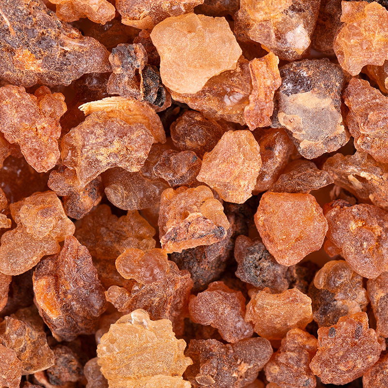 Derivata dalla resina dell'albero, la mirra emana un aroma ricco, fumoso e balsamico; storicamente apprezzata in profumeria, apporta un tocco di antico mistero ai profumi moderni.